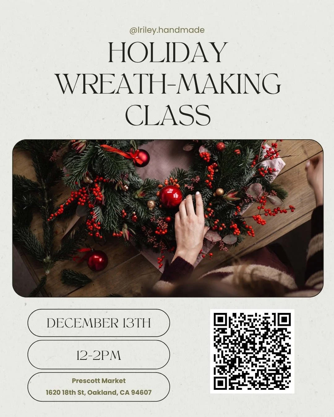 Create a lush seasonal wreath at Prescott Market with L Riley Handmade. Hands-on instruction and materials.